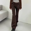 Pantalones vaqueros con bolsillos estilo Grunge para mujer, vaqueros de cintura baja con retales, color marrón, 2021