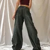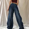 Pantalones vaqueros estampados Vintage con doble hebilla para mujer, pantalón vaquero holgado de cintura alta y piernas anchas, ropa de calle salvaje, moda