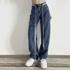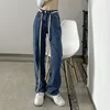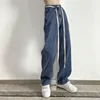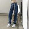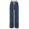 Pantalones vaqueros sueltos con letras a la moda para mujer, pantalón informal recto, con cordones, holgado, adelgazante, 2021