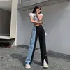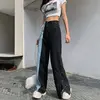 Pantalones vaqueros largos Vintage para mujer, ropa de calle holgada de cintura alta, ropa dividida, de pierna ancha, otoño