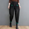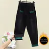 Pantalones vaqueros de invierno para mujer, Jeans negros cálidos de algodón con realce, Jeans Vintage cálidos de cintura elástica Harem y2k, Jeans de gran tamaño