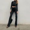 Pantalones vaqueros de Campana Negra para mujer, vaqueros de cintura alta Vintage, Vaqueros pequeños de campana, Vaqueros azules