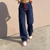 Sunny y.j. Pantalones vaqueros holgados de pierna recta para mujer, Jeans Cargo de retazos con bolsillos, estilo Hip Hop, Vintage, de cintura alta, para novio y mamá