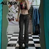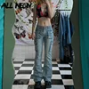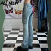 ALLNeon pantalones vaqueros de tiro bajo para mujer, ropa de calle de estilo Retro, de longitud completa, con bolsillos grandes, Y2K, 2000