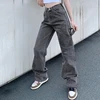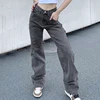 Sunny y.j. Pantalones vaqueros holgados grises para mujer, ropa de calle Vintage de cintura alta, pantalones vaqueros Y2K de pierna recta para novio, mamá, pantalones Grunge