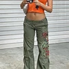 Pantalones Cargo con bolsillos para mujer, Vaqueros holgados de cintura baja y pierna recta, estilo Boyfriend Y2K con estampado estético, color verde