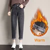 Pantalones vaqueros de terciopelo para mujer, Jeans gruesos y cálidos de cintura alta, Jeans Mom holgados, Vintage, pantalones vaqueros Harem de pierna ancha