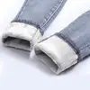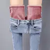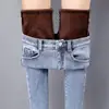 Pantalones vaqueros cálidos de terciopelo para mujer, pantalón informal de cintura alta, talla grande, invierno, 2019