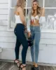 Melody pantalones vaqueros de cintura alta para mujer y niña, Vaqueros ajustados sexys, ropa de calle