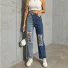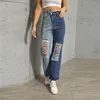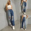 Pantalones vaqueros Vintage con agujeros para mujer, holgados de Vaqueros cintura alta, Pantalón Cargo de retales