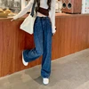 Feynzz pantalones vaqueros de cintura alta para mujer, ropa de mezclilla de pierna ancha, Jeans azules de calidad Vintage, Pantalones rectos de moda