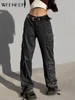 Weekeep pantalones vaqueros Vintage holgados para mujer, Jeans Cargo de cintura baja con bolsillo, ropa de calle de retales, Jeans Harajuku Y2k Light Academia Mom