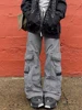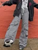 Weekeep pantalones vaqueros de pierna ancha para mujer, ropa de calle Vintage, de cintura alta, con bolsillos y cremallera, Y2k