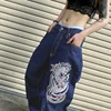 WeiYao pantalones vaqueros holgados de pierna ancha para mujer, ropa de calle Hippie de cintura baja, Vaqueros Mom Vintage con estampado de dragón, trajes de los años 90