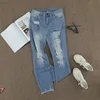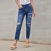 Pantalones vaqueros deshilachados de estilo callejero para mujer, Jeans tobilleros de cintura alta, color azul, 2021