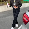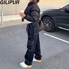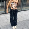 Pantalones Cargo negros para mujer, Vaqueros holgados de cintura baja, moda Vintage, ropa de calle femenina, 2000