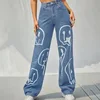 Pantalones de moda para mujer, Vaqueros estampados de talla grande, holgados, de tendencia, superelásticos, 2021