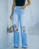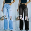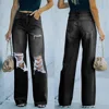 Pantalones vaqueros holgados rasgados de pierna recta para mujer, a la moda ropa de calle holgada, pantalones femeninos de cintura alta, pantalones de novia con agujeros