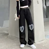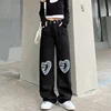 Vaqueros cintura alta holgados de para mujer, ropa de calle americana, pantalón largo holgado negro, moda de otoño