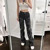 WeiYao Pantalones rectos de mezclilla con estampado Grunge para mujer, ropa de calle de cintura alta, estilo gótico para correr, Vaqueros coreanos de estética de los años 90