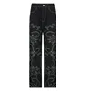 WeiYao Pantalones rectos de mezclilla con estampado Grunge para mujer, ropa de calle de cintura alta, estilo gótico para correr, Vaqueros coreanos de estética de los años 90