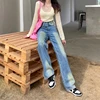 Pantalones vaqueros Vintage Tie Dye para mujer, ropa de calle Y2K, pantalones de cintura alta, Jeans rectos, moda Harajuku Grunge
