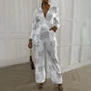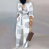Mono informal con cuello en V y cordones para mujer, traje de una pieza con estampado de letras, monos de manga larga anudados