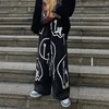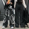 Pantalones vaqueros holgados con estampado de calavera para mujer, pantalones Cargo rectos de gran tamaño, estilo Hip Hop, color negro, 2021