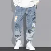 2021 nuevos pantalones vaqueros Cargo para hombre de moda de Harlan ropa informal de algodón Harajuku Pantalones Pantalón pantalones de cintura elástica Hombre