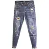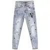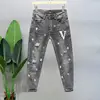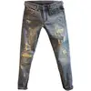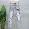 Pantalones vaqueros con estampado de diamantes para hombre, Jeans ajustados con agujeros de color claro, estilo Harajuku, moda europea y americana, novedad de otoño