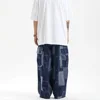 JING ZHE pantalones vaqueros holgados de pierna ancha para hombre, ropa de calle de moda de Hip Hop, pantalones vaqueros de cintura elástica con bolsillo gótico