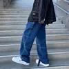 JING ZHE de los hombres pantalones vaqueros de pierna ancha Denim Pantalones flojos rectos holgados de los hombres de los pantalones vaqueros de Otoño de 2021 de Pants Streetwear pantalones de Hip Hop