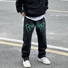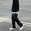Pantalones vaqueros negros de estilo Hip Hop para hombre, Jeans holgados de tubo recto, estilo americano, Hip Hop, con cremallera lateral