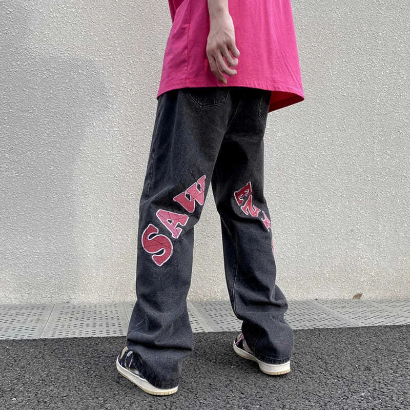 Pantalones vaqueros de skateboarding para hombre y mujer, jeans rectos y sueltos con bordado de letras, estilo Hip hop, Y2K, 2021
