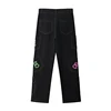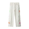 Pantalones Cargo rectos con estampado de letras y bolsillo Retro Para hombre y mujer, vaqueros de gran tamaño, ropa de calle Harajuku, informales