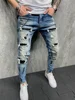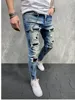 Pantalones vaqueros rasgados para hombre, pantalón de chándal Sexy, informal, ajustado, talla europea, gran oferta