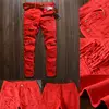 Pantalones vaqueros rasgados elásticos para hombre, Jeans ajustados rotos desgastados, negros, blancos y rojos