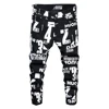 Pantalones vaqueros elásticos con estampado de números y letras blancas para hombre, Jeans modernos con Sim Fit, pitillo, triangulación de envíos