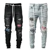 Pantalones vaqueros ajustados rasgados para hombre, Jeans elásticos de retazos de rejilla, pantalones pitillo elásticos de Hip Hop para trotar, ropa para hombre 2021