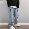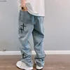 Pantalones vaqueros con bordado de estrella cruzada para mujer, Pantalón ancho de Hip Hop, pantalones de skateboard, Y2K, 2021