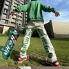 Pantalones vaqueros holgados con estampado de Hip Hop para mujer, pantalones de skateboard, Vaqueros Y2K de cintura media y elástica, 2021