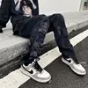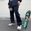 Pantalones vaqueros rasgados para mujer, jeans holgados de Hip Hop Y2K, jeans de equipo para mujer, jeans bordados, jeans negros, jeans desgastados