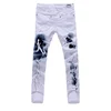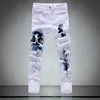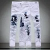 Pantalones vaqueros informales para hombre, Jeans de talla grande 28 42, diseño largo, estilo coreano, elásticos, ajustados, con estampado blanco, a la moda