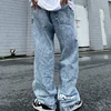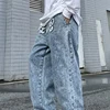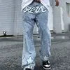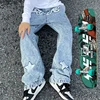 Pantalones vaqueros lavados bordados para hombre y mujer, jeans sueltos de pierna alta, Hip hop, skateboard, Y2K