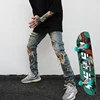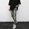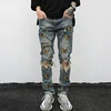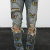 Pantalones vaqueros rasgados de estilo hip hop para hombre, jeans ajustados con bordado de mariposas y agujeros, 2021