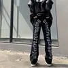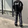 Pantalones vaqueros rasgados de pierna recta para hombre, jeans holgados con bordado de letras bordadas, hip hop, micro cuerno, para monopatín