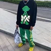 Pantalones vaqueros verdes de pierna ancha para hombre y mujer, jeans holgados con bordado de hip hop para monopatín, Y2K, 2021