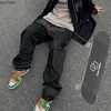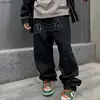 Pantalones vaqueros con estampado negro para hombre y mujer, jeans sueltos Vintage, pantalones de Hip Hop, pantalones de skateboarding, pantalones de pierna ancha Y2K, 2021