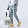 Pantalones vaqueros rotos de estilo Hip Hop para hombre, Jeans ajustados de color azul claro, ropa de calle, Jeans rotos con agujeros