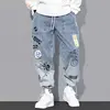 Fothe pantalones vaqueros informales con Logo Popular para hombre, Jeans sueltos de talla grande, faja y pierna ancha, Harlem, nueva tendencia de primavera